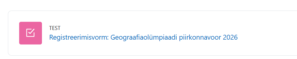 NB! Alatest sellest aastast peab õpilane HTM moodles geograafiaolümpiaadi piirkonnavooru kursusel täitma ka registreerimisvormi, kus küsitakse õpilase klassi, kooli, maakonda, e-maili, õpetaja nime ja õpetaja e-posti.